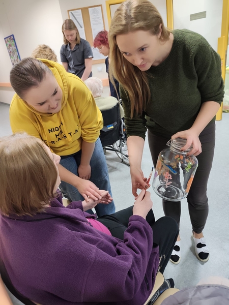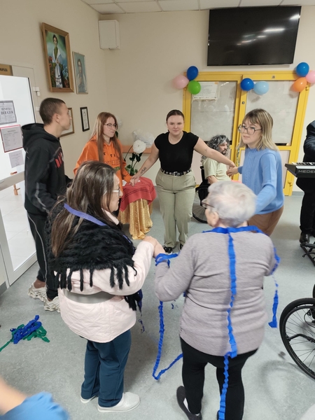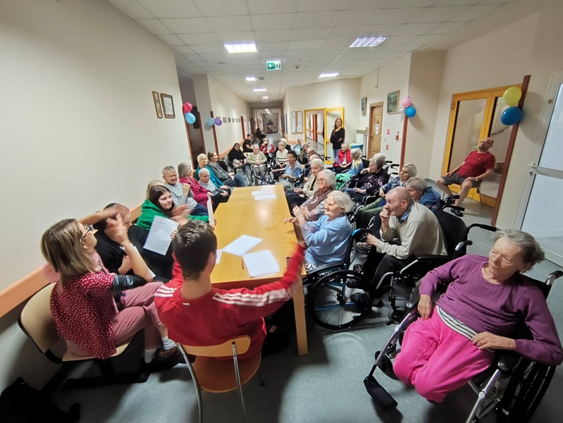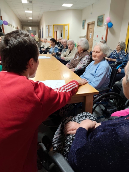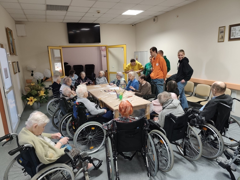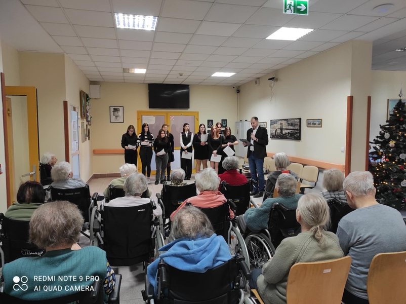 17.12.2024 r. mieliśmy wspaniałych gości, grupa wolontariuszy z Wolontariatu Czytelniczego, którym opiekują się panie: Joanna Kułak i Joanna Russa-Resztak z IX Liceum Ogólnokształcącego im. Mikołaja Kopernika w Lublinie. Wolontariusze przynieśli ze sobą drobne, świąteczne upominki (własnoręcznie zdobione pierniczki) oraz zaśpiewali wspólnie z mieszkańcami kolędy. Były życzenia świąteczne i mnóstwo wzruszeń. Dziękujemy!