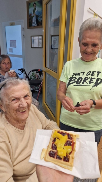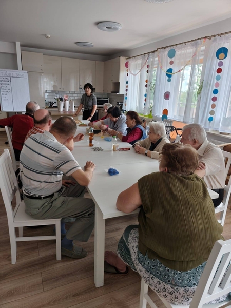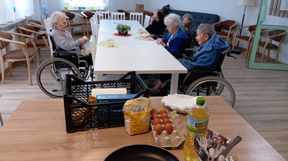 z Naszymi mieszkańcami, pod czujnym okiem Naszego dietetyka Pana Sylwestra, upiekli przepyszne ciasto . Zapach był obłędny w całym Domu, a smak jeszcze lepszy…mniam, na takie zajęcia to my jesteśmy bardzo chętni!
