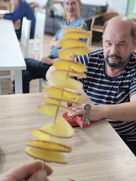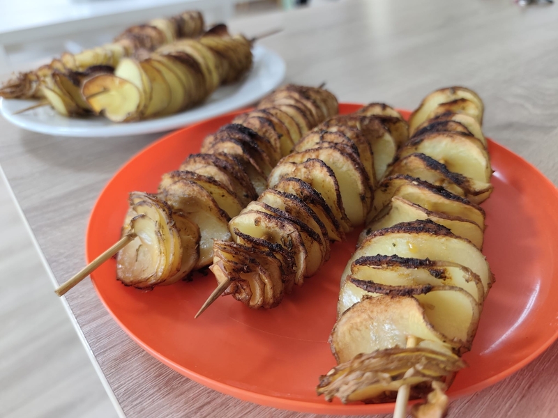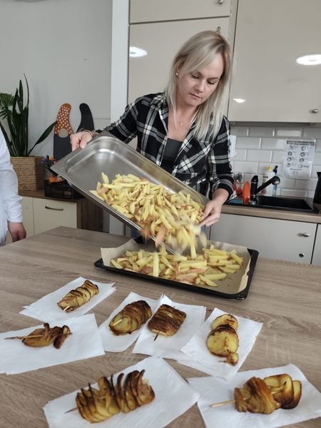 01.08.2025 r. Kulinoterapia i wjechały dziś ziemniaczki opiekane zakręcone….jak w kurortach wakacyjnych i do tego frytki. Ziemniak to król dzisiejszych zajęć.