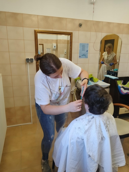 w ramach wolontariatu obcinał włosy panom i pielęgnował brody. Jakich mamy teraz przystojnych mężczyzn. Dziękujemy Panie Piotrze.