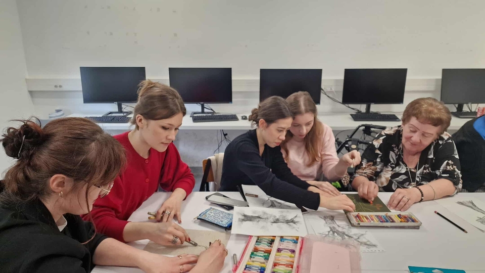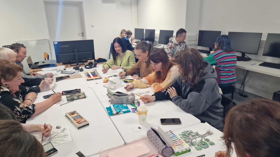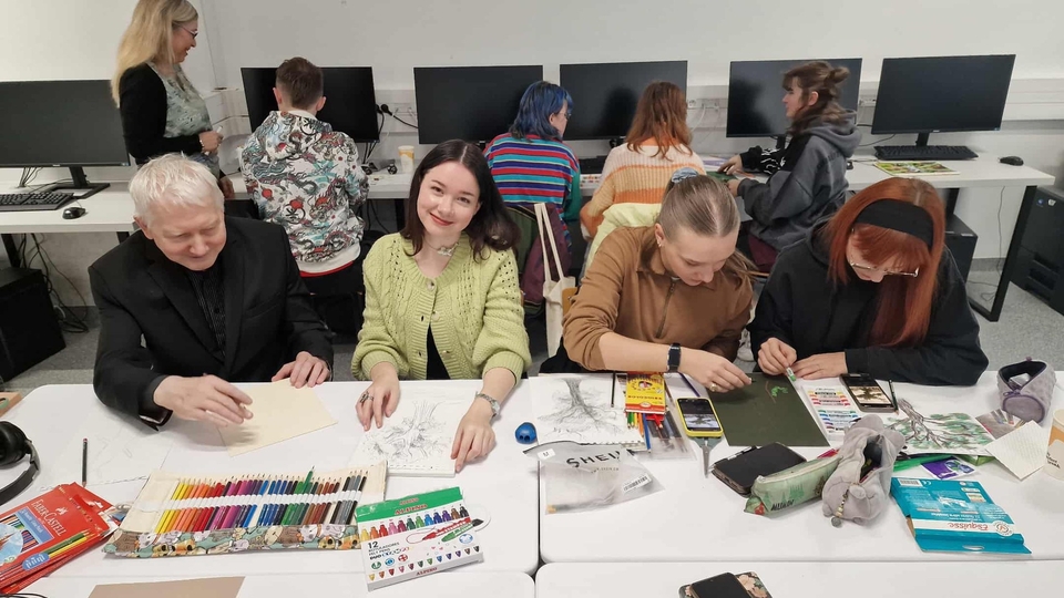 Po inspirującej prelekcji odbyły się warsztaty artystyczne, podczas których uczestnicy tworzyli prace inspirowane ilustracją książkową. Spotkanie upłynęło w twórczej, pełnej zaangażowania atmosferze.