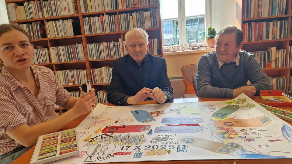 Zainspirowani barwną prelekcją, uczestnicy przystąpili do warsztatów plastycznych, które poprowadziła pani Emilia Czerwińska, kierownik filii nr 2 Biblioteki Łopacińskiego. Pod jej życzliwym i twórczym kierunkiem powstał jeden wspólny plakat artystyczny, będący plastyczną interpretacją lubelskich legend. Każdy z uczestników dodał swój element do całości, dzięki czemu powstała kolorowa i symboliczna kompozycja, przedstawiająca m.in. odcisk czarciej dłoni w Trybunale, wesołego koziołka, tajemniczy kamień oraz inne motywy związane z historią miasta.