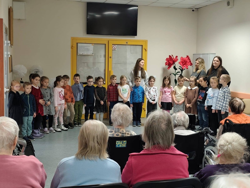 24.01.2024 r.– Dzisiaj mieliśmy przemiły dzień. Dzieci z Przedszkola nr 70 w Lublinie, sprawiły Nam wielką przyjemność swoim wystąpieniem z Okazji Dnia Babcia i Dziadka. Jeszcze jeden wspaniały gość na naszej uroczystości Pani Ewa Dados – Kawaler Orderu Uśmiechu i Pełnomocnik Prezydenta Miasta Lublin ds. Seniorów w jednej osobie. Łącząc pokolenia tak jak u Nasz, zrobiła Nam wielką niespodziankę odwiedzając Nasz Dom i mieszkańców.